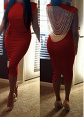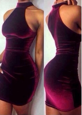 - Description:Cutout Design Red High Neck Bodycon Dress