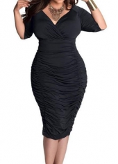 - Description:Wine Red V Neck Plus Size Bodycon Dress