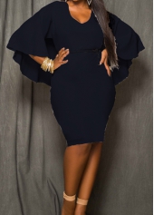 - Description:High Neck Navy Blue Plus Size Bodycon Dress