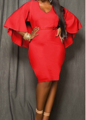 - Description:V Neck Short Sleeve Red Bodycon Dress