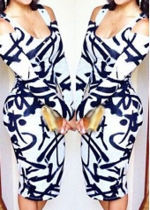 - Description:Round Neck Sleeveless Printed White Bodycon Dress