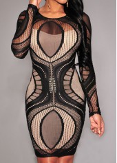 - Description:Sequin Decorated Long Sleeve High Neck Dress