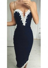- Lace Panel Navy Blue Spaghetti Strap Bodycon Dress