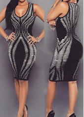 - Description:Round Neck Sleeveless Printed Black Sheath Dress