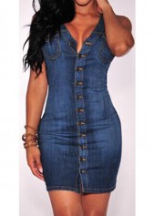 - Button Closure Sleeveless Navy Blue Bodycon Dress