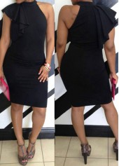 - Description:Black Sleeveless High Neck Knee Length Dress